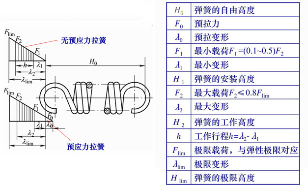 拉伸彈簧的特性曲線: